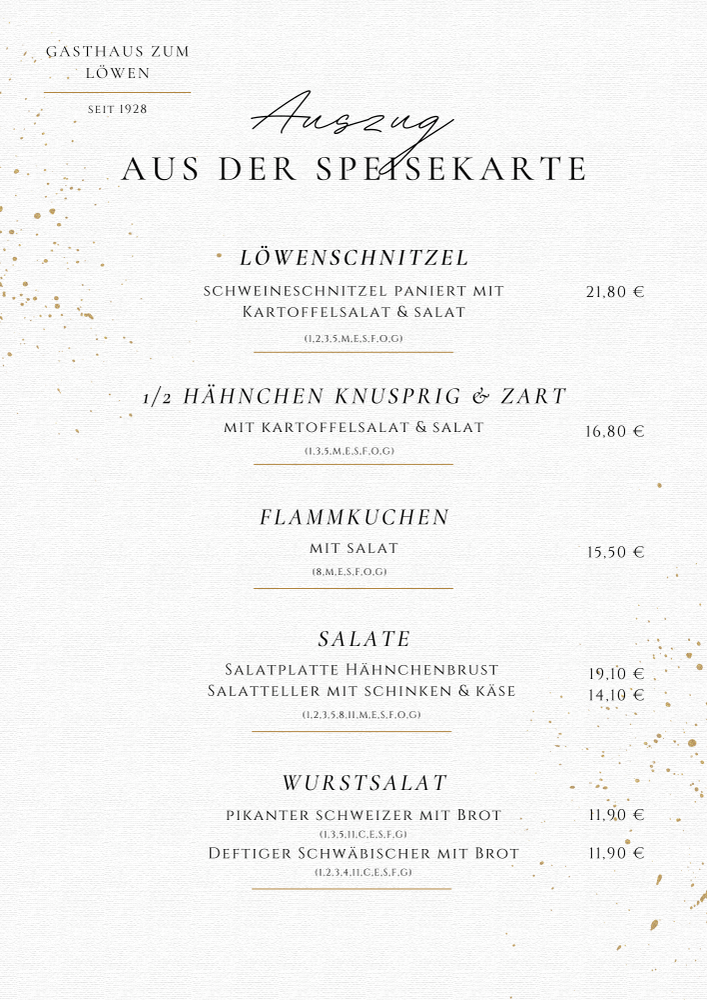 Auszug Speisekarte